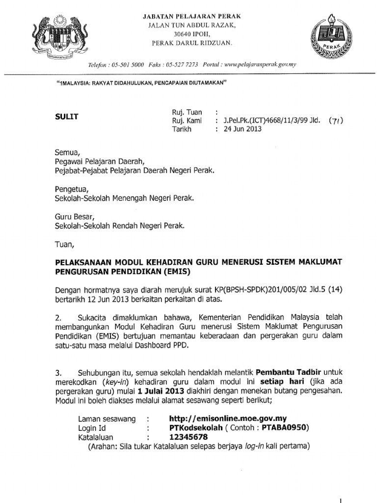 Surat Arahan Laksana Aplikasi Kehadiran Dari Jpn Perak Pdf